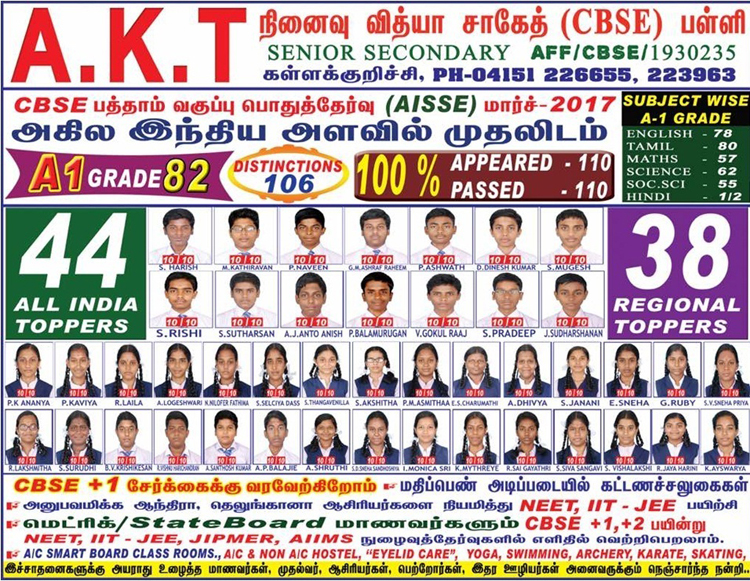 All All the students at AKT VIDYA SAAKET have consistently secured excellent results in the All India Senior School Certificate Examinations (AISSCE) and All India Secondary School Examinations (AISSE).