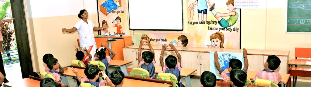 The school has a sophisticated sickroom with first aid facility and medicines. The room has clean beds for the children who need to rest and recover. A staff nurse monitors the health of the students providing first aid to the required students. She also deals the health education classes.
