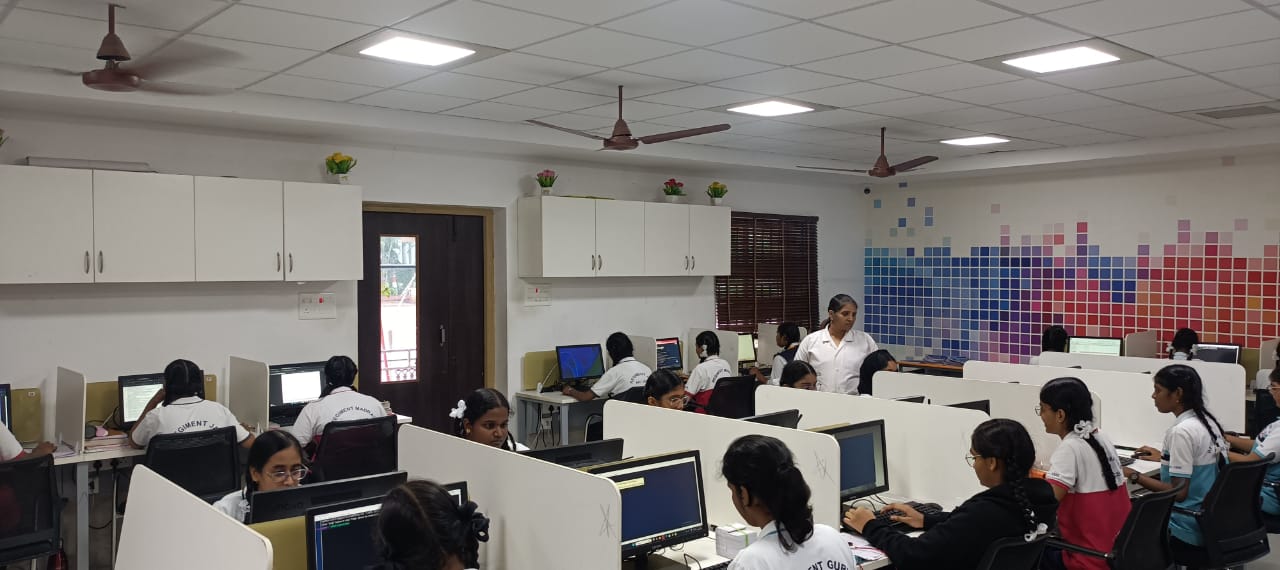 Our Computer lab. Students are taught basic in computer from Class I onwards. From Class III, onwards students are introduced to and work with, various software programmes.
