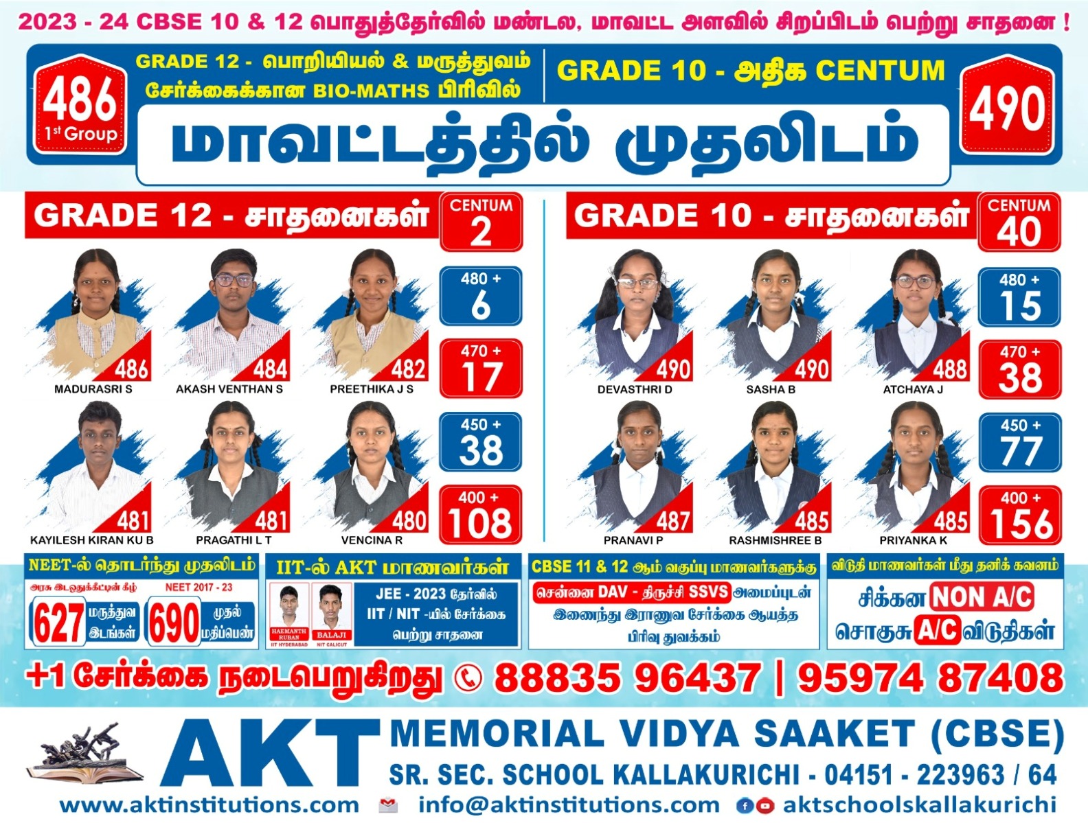 All All the students at AKT VIDYA SAAKET have consistently secured excellent results in the All India Senior School Certificate Examinations (AISSCE) and All India Secondary School Examinations (AISSE).